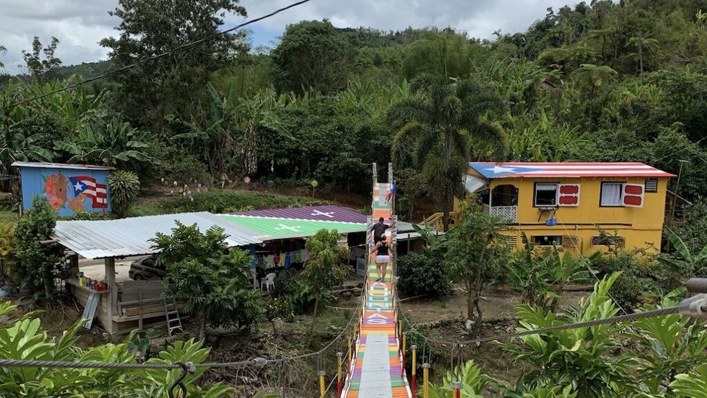 De seguro han visto las fotos en redes sociales. El puente colgante con la bandera de Adjuntas pintada, y al lado, una casa cuyo techo muestra orgullosamente la bandera de Puerto Rico.