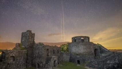 Capturada el 26 de mayo, la fortaleza de Llandeilo muestra un fondo astronómico con visiones de la galaxia cercana. Video: Reuters.