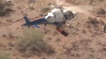 Sin embargo, cuando comenzaron el procedimiento para recoger a la víctima se produjo un desperfecto que hizo girar la canasta. Tal como quedó grabado, los giros comenzaron a subir de intensidad y al paso de unos minutos parecía que no podrían detenerla.