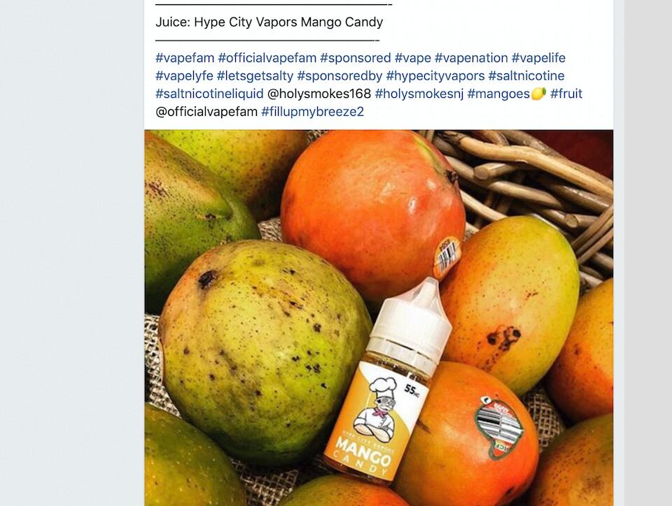 Facebook prohíbe la promoción de cigarrillos electrónicos y las autoridades han estado presionando a los “influencers” _quienes tienen una gran cantidad de seguidores en las redes sociales y que reciben comisiones por promover productos o servicios_ para que aclaren que están recibiendo un pago para promover algo.