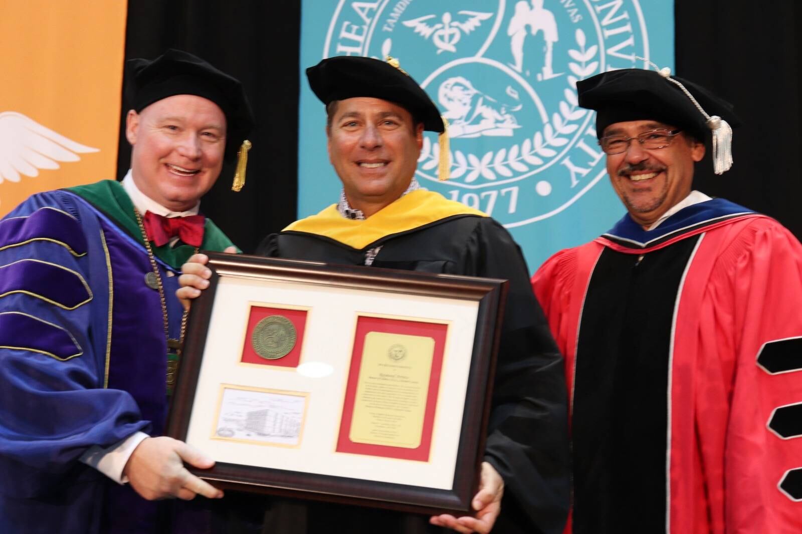 El rector de PHSU, José A. Torres Ruiz, hizo entrega de un grado Honoris Causa como “Doctor of Sciences (D.Sc)” a Arrieta por la encomiable labor que lleva a cabo en beneficio de los pacientes de cáncer.