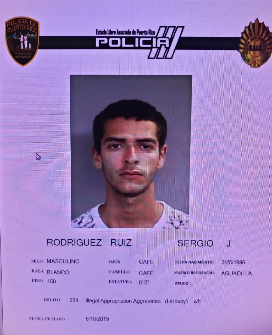 De acuerdo con el informe policiaco, agentes de la División de Propiedad, sometieron cargos contra Sergio J. Rodríguez Ruiz, de 23 años, residente en la Urbanización El Prado de Aguadilla y faltas contra los dos menores de 15 y 16 años, quienes cometieron los delitos de entrada heredad ajena y apropiación ilegal agravada.