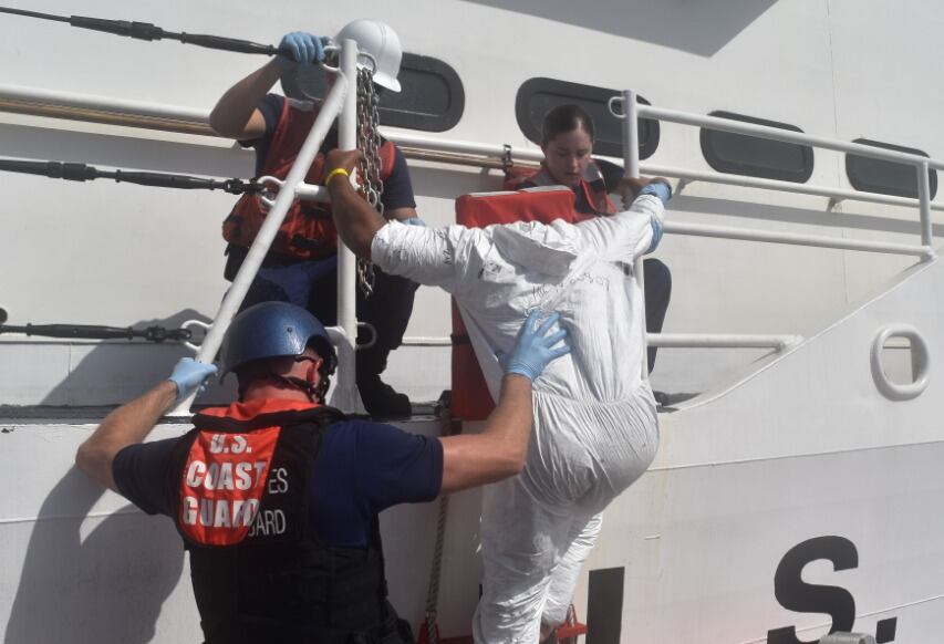 Una vez a bordo de un buque de la Guardia Costera, todos los inmigrantes reciben alimentos, agua, refugio y atención médica básica.
