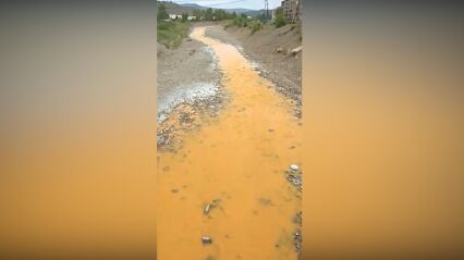 El río Modonkul, cerca de la ciudad de Zakámensk, en la República de Buriatia, se ha teñido de color naranja, como muestran las imágenes filmadas el martes.