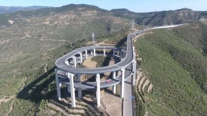 Espectacular video de una carretera de tres pisos construida a lo largo de la cima de la montaña Tianlong en el norte de China.