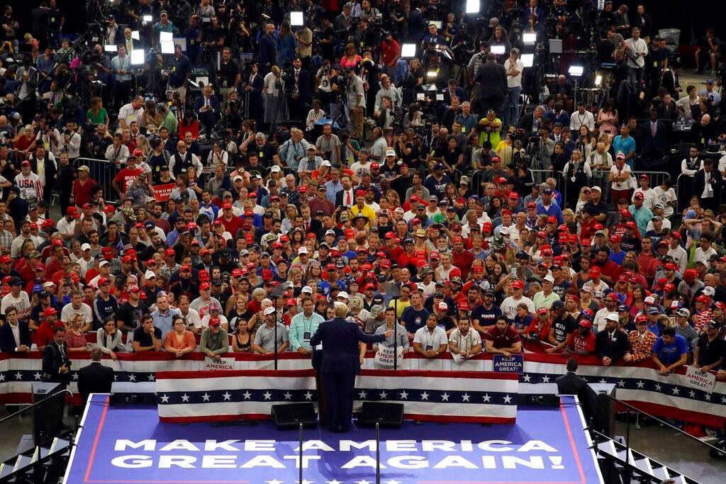 Aunque la campaña de Trump ha intentado profesionalizarse, con atractivas oficinas y numeroso personal que está aumentando, y a pesar de dos años y medio ocupando la Oficina Oval como comandante en jefe de las fuerzas armadas, de todas formas el mandatario siguió enfocado en animar a su base de votantes y presentarse como un externo a la política que se postula contra la clase política de Washington.