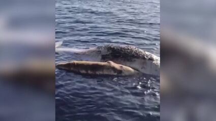 El grupo Marevivo dijo que la Guardia Costera de Italia respondió al avistamiento y supuso que la madre, que medía 6 metros, murió mientras intentaba liberar a su cría.