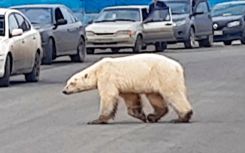 No es claro cómo terminó la osa en Norilsk, que está a unos 400 kilómetros (250 millas) tierra dentro del hielo marítimo que suele ser el lugar habitual para caza de osos polares.