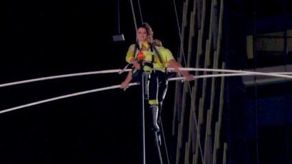El cable estaba tendido entre dos rascacielos de 25 pisos. Nik y Lijana caminaron uno hacia el otro desde los lados opuestos. Después de encontrarse en el cable, Nik pasó por encima de Lijana. Ambos terminaron la caminata con éxito.