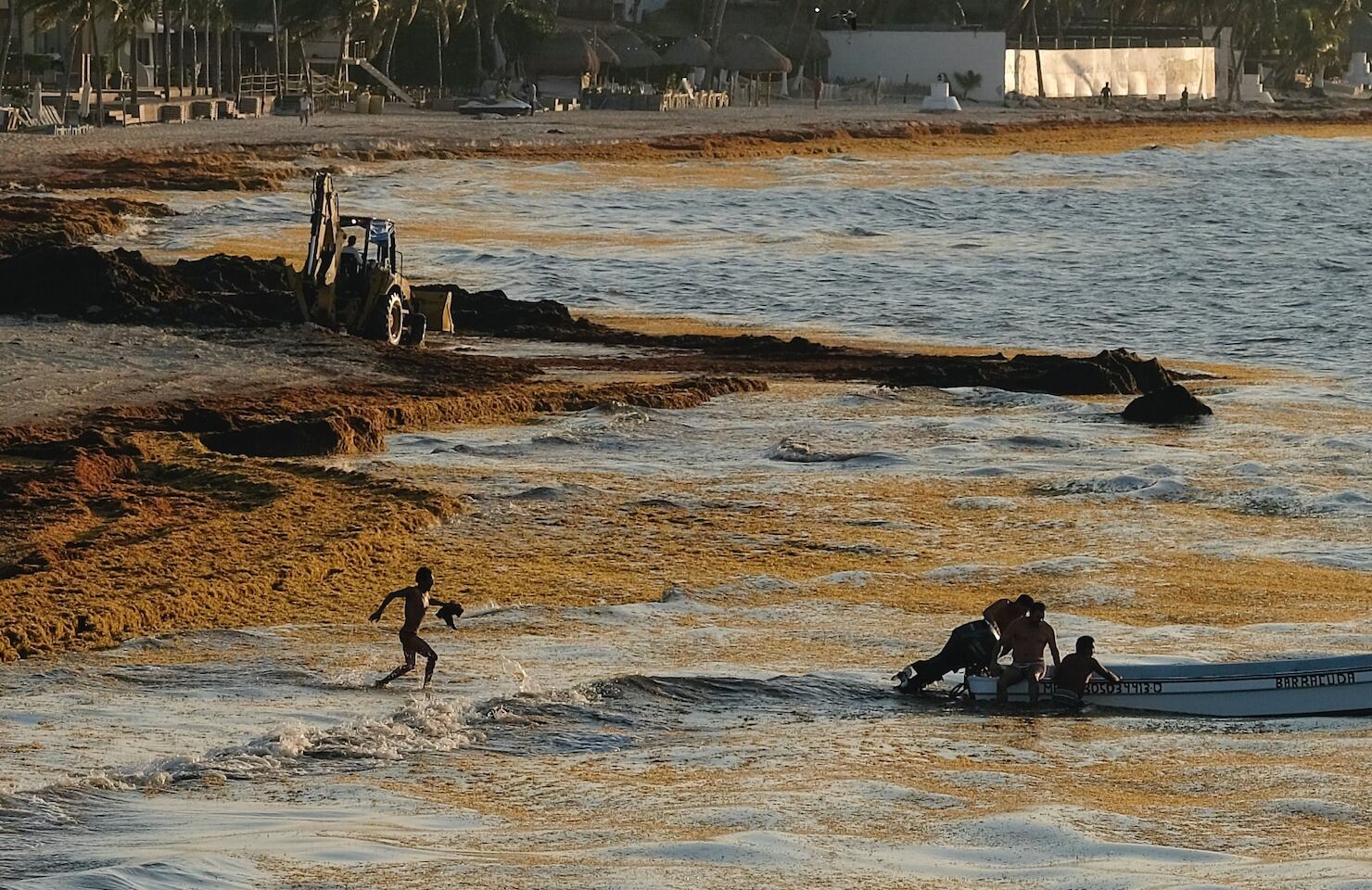 “Combatir el sargazo es una tarea de todos los días”, dijo la alcaldesa de Cancún Mara Lezama. “Las playas por la mañana se limpian, a veces por las tardes, a veces por las noches, y vuelve a llegar y vuelve a llegar, y hay que volver a retirarlo”.