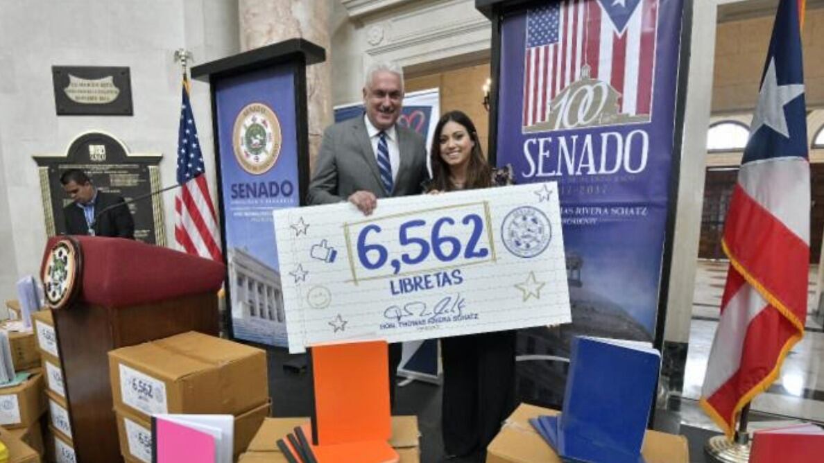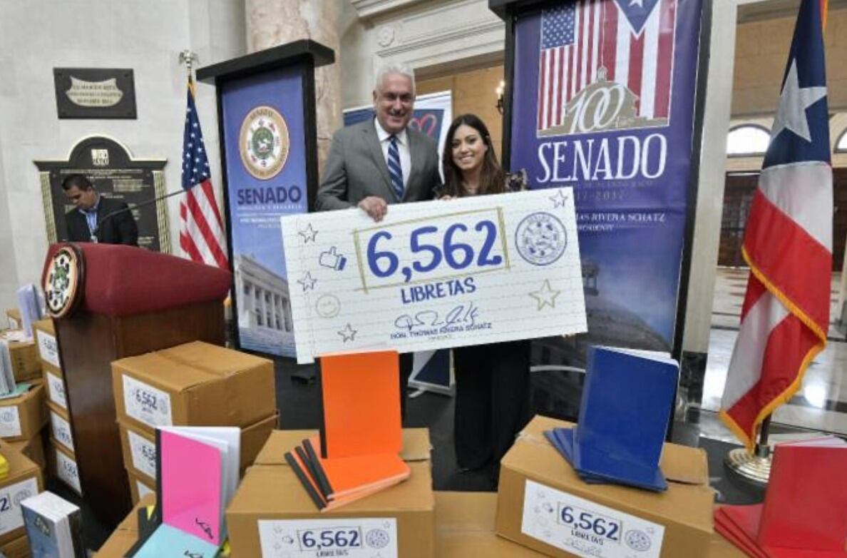 El presidente del Senado, Thomas Rivera Schatz entregó hoy a la primera dama, Beatriz Rosselló, 6,562 libretas que fueron donadas por los empleados de la Cámara Alta como parte de la campaña “Fortaleza para ti. Back to School 2019 ”