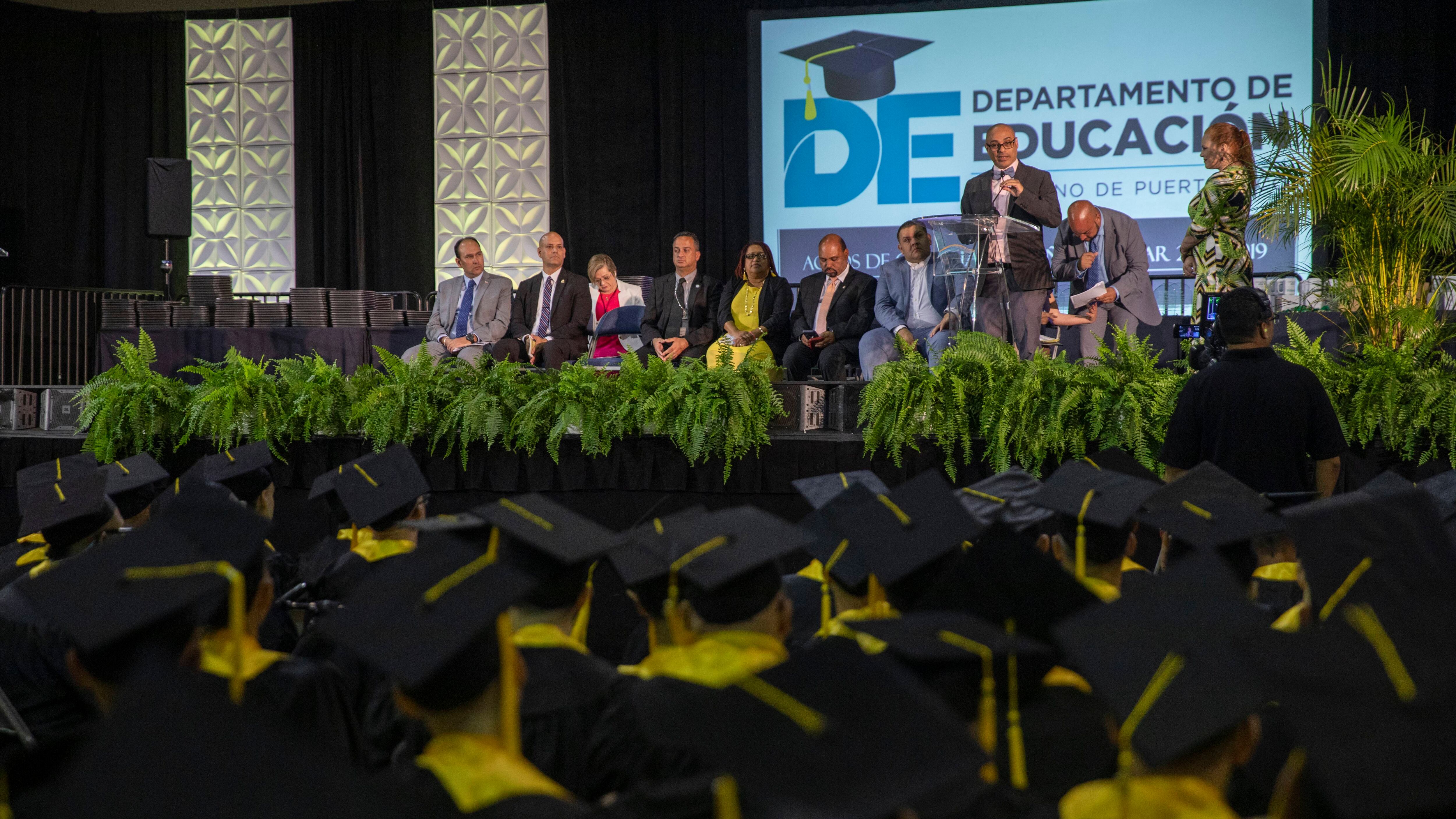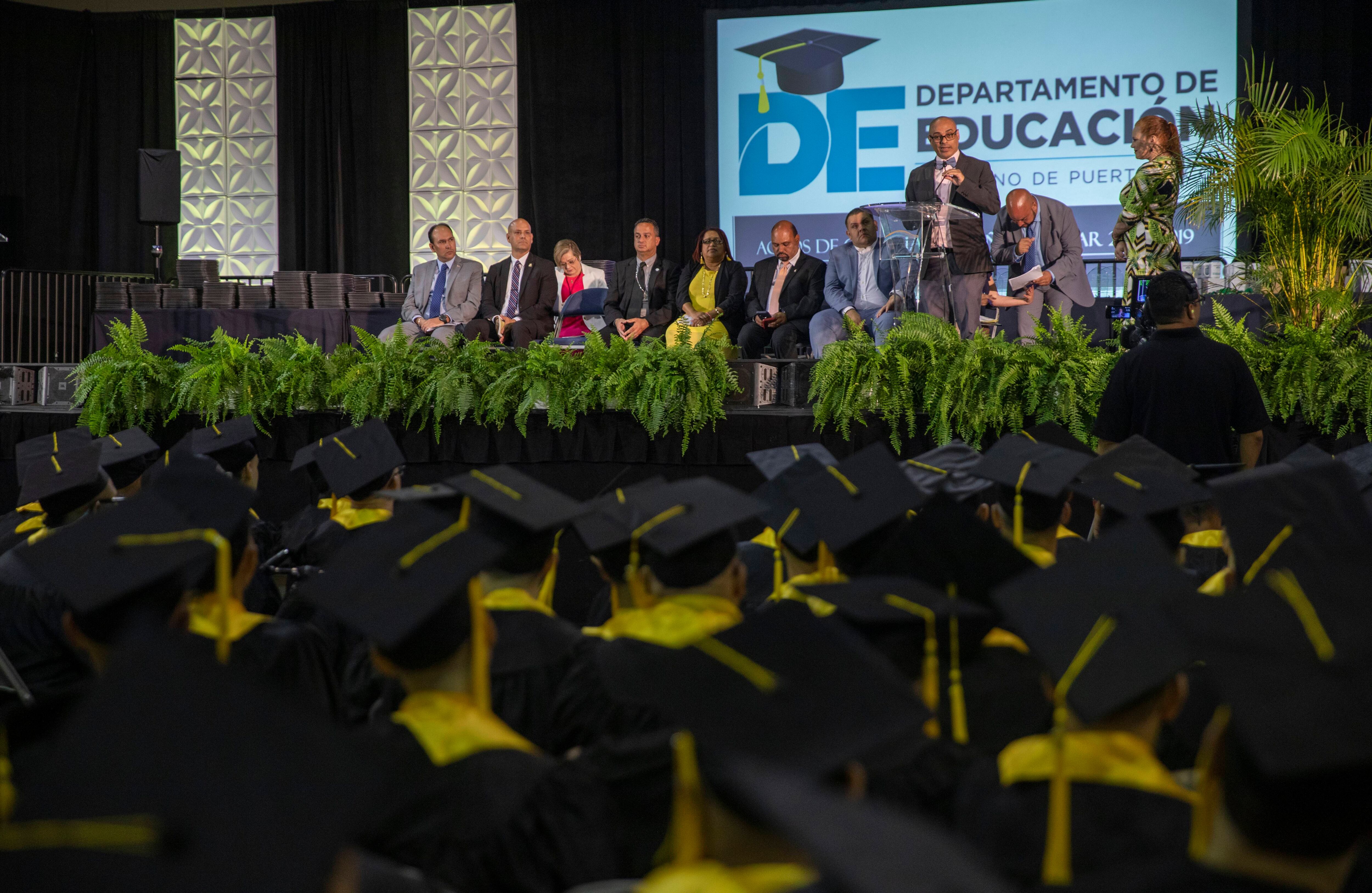 “En el Departamento de Educación estamos orgullosos de este grupo de estudiantes que, a pesar de las dificultades que han tenido, hoy logran terminar el cuarto año de escuela superior. Ciertamente, este evento es evidencia de que cuando crees en ti, puedes lograrlo. Perseveraron para lograr esto y hoy lo celebramos. Mi exhortación es que continúen estudios y carreras de adiestramiento, para que próximamente puedan insertarse en la fuerza laboral”, destacó el jefe de Educación en la ceremonia celebrada en el Centro de Convenciones de Miramar.