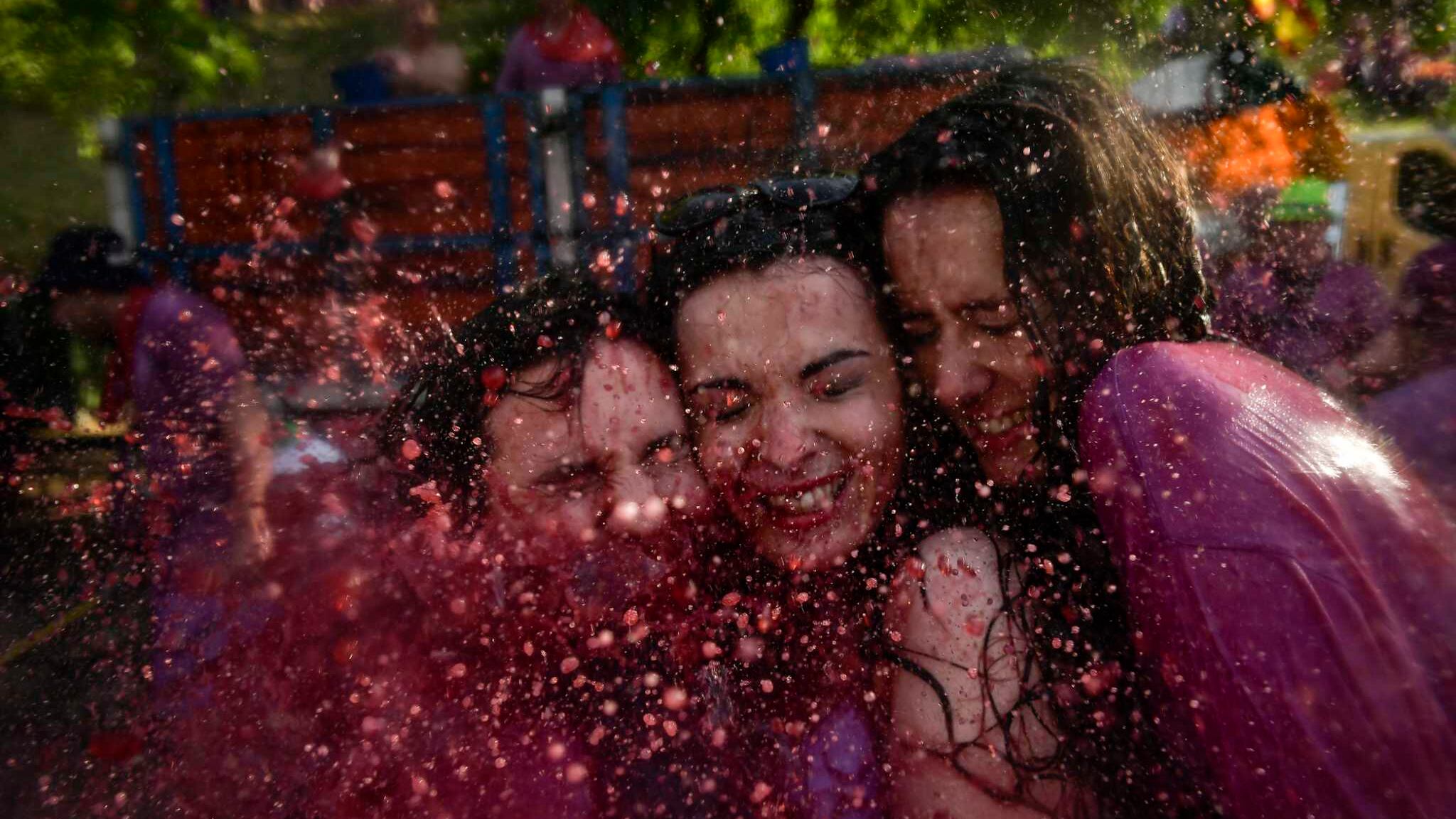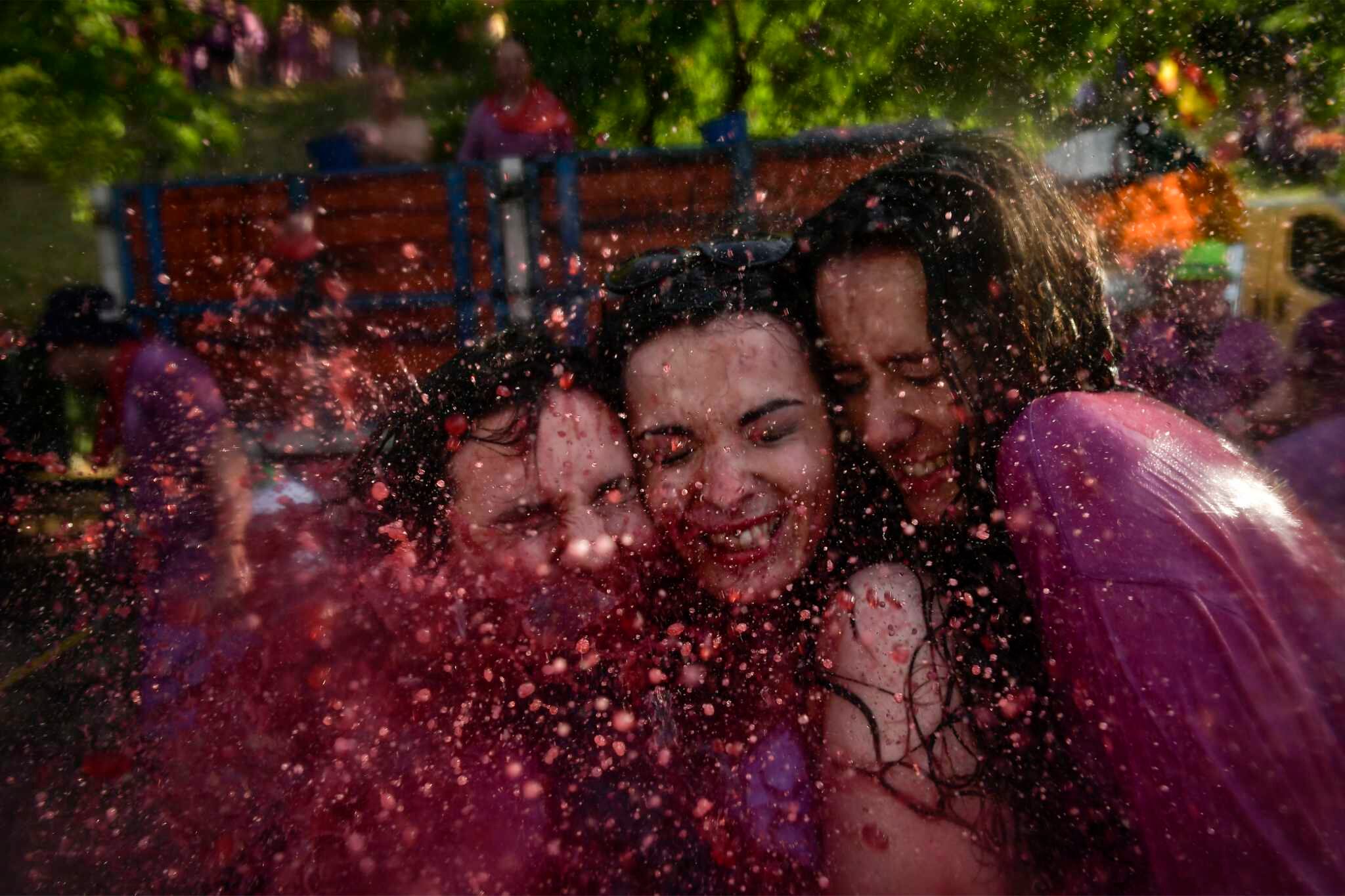 Los organizadores dijeron que el objetivo de la celebración es cubrir por completo con vino a las personas que te rodean tan rápido como sea posible.