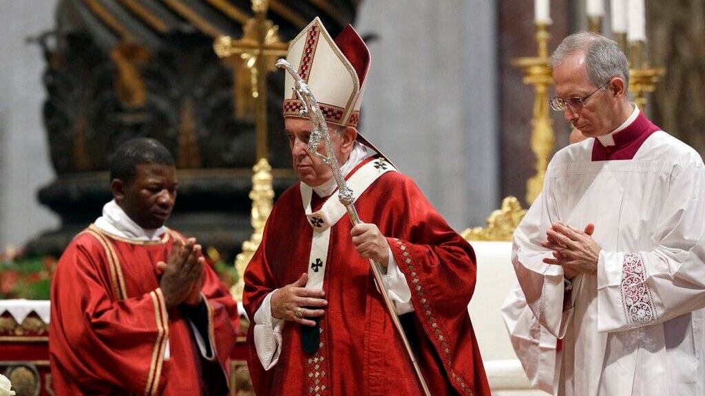 El pontífice ofició la misa en la Basílica de San Pedro el sábado, en la festividad de los apóstoles Pedro y Pablo, los santos patronos de Roma. Francisco exhortó a los fieles a ser humildes.