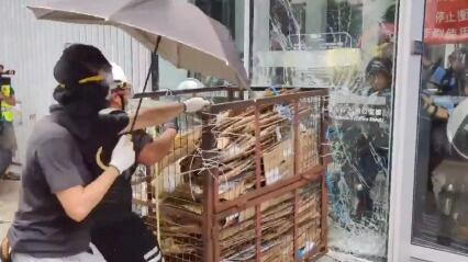 Un grupo de manifestantes lanzó el lunes un carro de metal contra las puertas de cristal del edificio del Consejo Legislativo durante las protestas en Hong Kong, mientras la región se prepara para conmemorar el 22 aniversario de la entrega de Hong Kong a China.