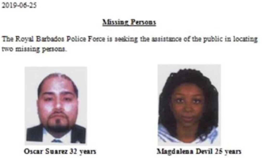 La pareja fue identificada por las autoridades de Barbado como Oscar Suárez, de 32 años y de origen boricua y su novia Magdalena Devil, de 26 años, residentes en Montclair, Nueva Jersey.