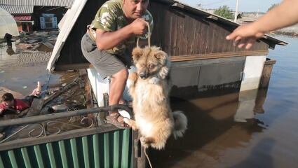 Los trabajadores de los equipos de emergencia del distrito de Tulunsky, en la región de Irkutsk, están trabajando contrarreloj para tratar de rescatar a las mascotas que han quedado atrapadas por las graves inundaciones en el área.
