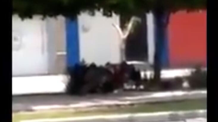 Una persona que estaba en un edifico cerca del parque los grabó. En el video se escucha a más gente burlándose de lo que sucedía.