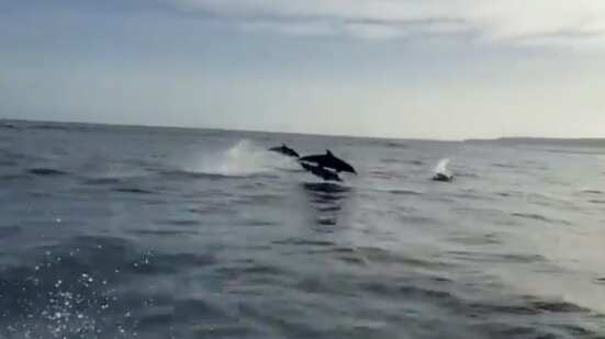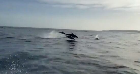 En un vídeo colgado en las redes sociales se observan algunos delfines nadando y saltando del agua, momento que fue captado por personas en una lancha.