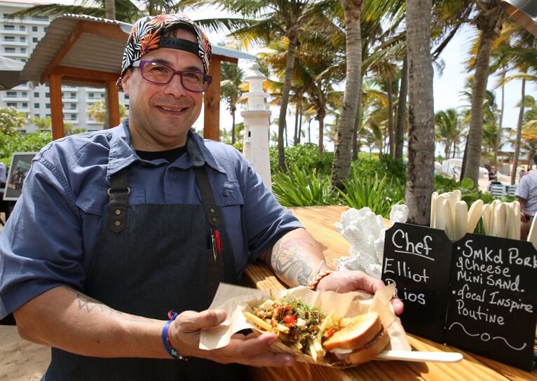 De La Concha, Chef Elliot Rios, presentó su decadente “To’ D Aki”, emparedado de pernil y queso, servido con una interpretación boricua de la célebre ‘poutine’ franco-canadiense: papas fritas cubiertas con queso semicurado y salsa caliente de carne. Por su parte, Emanuel Oliveras, del restaurante Solera en La Concha, apostó por escabeche de setas con mejillas de cerdo en empanizado de naranja e hinojo y confit de chalotas. A ellos se unió el chef Germán Díaz, del aclamado ‘foodtruck’ La Cocinita, quien elaboraró tostadas de maíz con enchilado de camarones, mousse de aguacate, brunoise de corteza de tomate, queso fresco, cenizas de cebolla y cilantro, salpicado con sirope de arce.