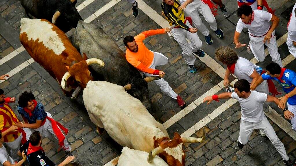 Las fiestas de San Fermín, que duran nueve días y fueron inmortalizadas por Ernest Hemingway en su novela de 1926 “Fiesta”, atraen a visitantes de todo el mundo que buscan probar su valentía y velocidad corriendo junto a seis astados que serán lidiados por la tarde.