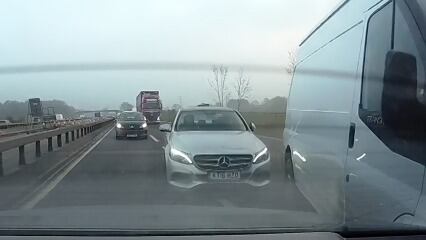 La víctima explicó: “Estaba viajando a través de una sección de 50 mph de la M4 a fines de febrero cuando una furgoneta, montada a horcajadas en los carriles 1 y 2, chocó con dos autos, uno en el carril interno y otro en el carril central”.