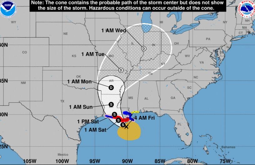 El gobernador John Bel Edwards dijo que el río Mississippi podría aumentar su caudal. Dijo que no se prevé que supere sus defensas, pero que eso podría cambiar si se altera la dirección o la intensidad de la tormenta.