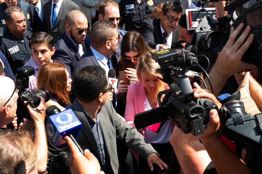 Guzmán lució el miércoles su tradicional bigote después de presentarse totalmente rasurado durante el juicio. Vestido con una camisa de color lila, una corbata azul y una chaqueta gris, buscó con la mirada a su esposa Emma Coronel al entrar a la sala. Al verla sentada entre el público le mandó un beso y se tocó el corazón. Tras los aproximadamente 50 minutos de audiencia, se despidió enviándole besos.