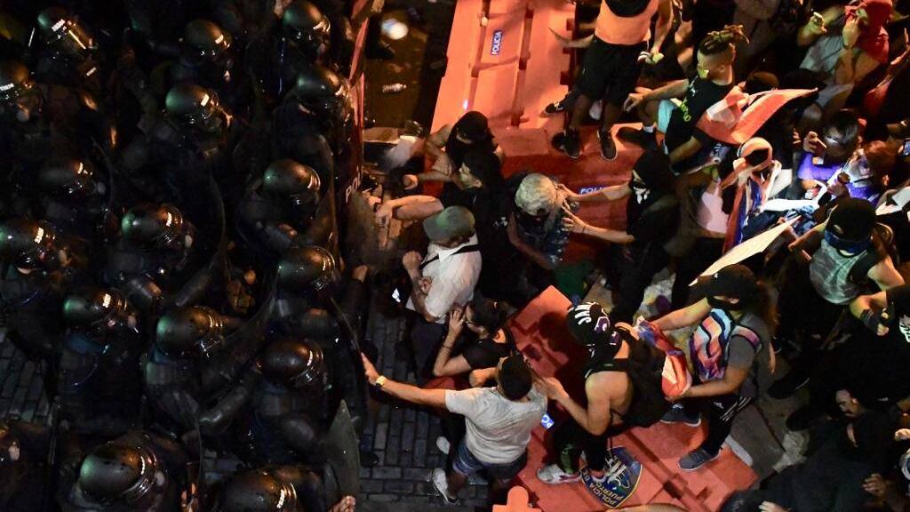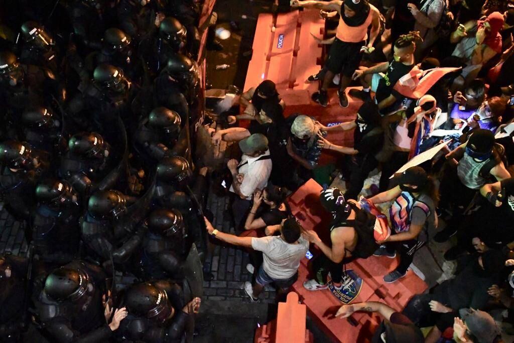 Ante el suceso, los ánimos se caldearon en el lugar y la Policía lanzó advertencia a los manifestantes.