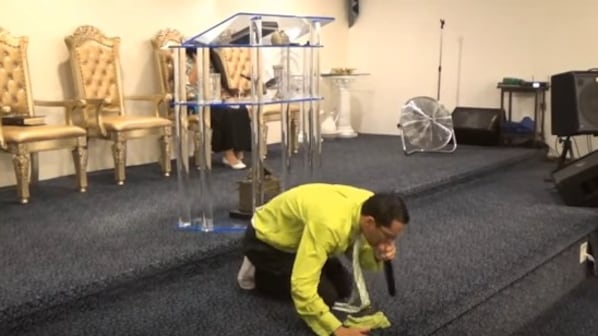 En medio de una oración, el evangelista habla en lenguas y se le escucha decir que “viene una persecución para Puerto Rico como nunca se ha visto en la historia”.