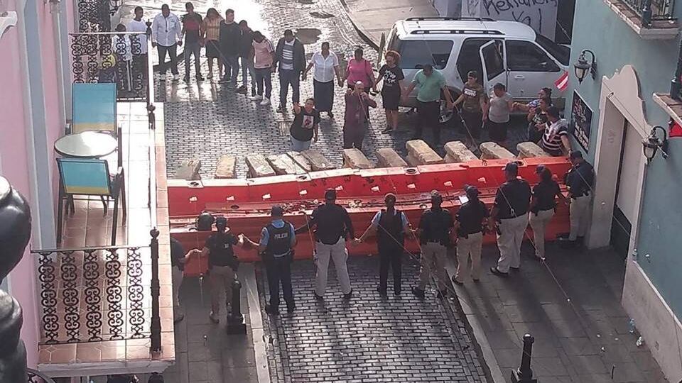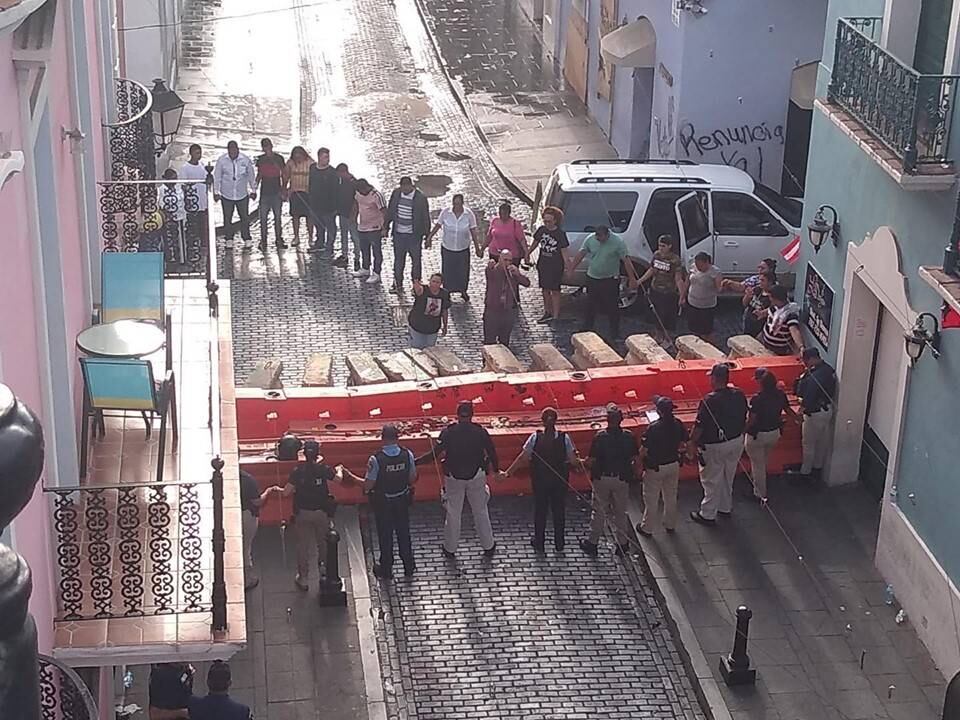 Por ejemplo, según muestra el post a continuación, en la mañana de hoy, sábado, miembros de la Uniformada unieron manos con los manifestantes en un momento en el que se levantó una plegaria por el bienestar de nuestro pueblo. La imagen fue publicada por Orlando Rivera Martínez y captada desde un balcón aledaño a uno de los puntos de perímetro cercanos a La Fortaleza, en la esquina de la calle Fortaleza y la calle Del Cristo.