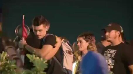 A segundos de escuchar la renuncia de Ricardo Rosselló Nevares, algunos manifestantes en Viejo San Juan se acercaron al perímetro de la policía para abrazarlos.