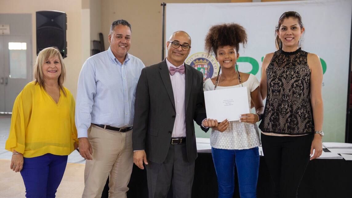 “En Educación hemos identificado y distribuido para este año académico 8 millones de dólares en becas a estudiantes en diferentes modalidades en las que se encuentran las de ustedes. A través de estos incentivos, promovemos el desarrollo de destrezas sociales, deportivas y, sobre todo, fomentamos el que nuestros alumnos se conviertan en seres humanos útiles para la sociedad. Ese es el compromiso que nosotros. En el DE, hemos asumido con tesón y con pasión, porque la razón de ser del sistema educativo son nuestros estudiantes”, puntualizó, por su parte, el secretario de Educación, Hernández Pérez.