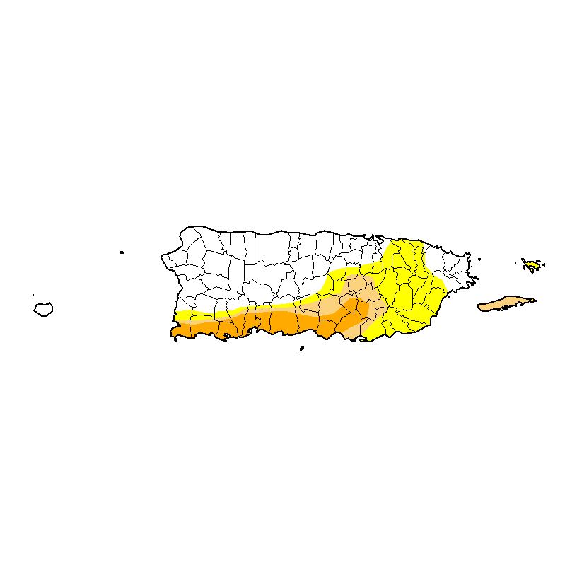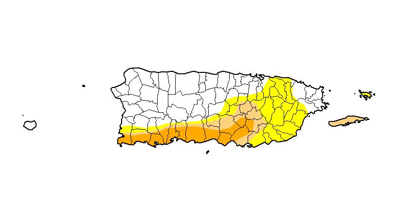 Los pueblos con partes del terreno bajo este nivel de sequía son Cabo Rojo, Lajas, Guánica, Yauco, Sabana Grande, Guayanilla, Peñuelas, Ponce, Juana Díaz, Coamo, Aibonito, Salinas, Santa Isabel, Cayey y Cidra.
