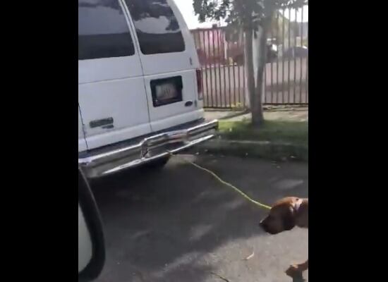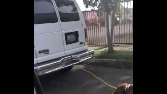 En el vídeo se observa al perro amarrado por el vehículo, mientras las mujeres le reclaman sobre porqué tiene al animal en ese estado.