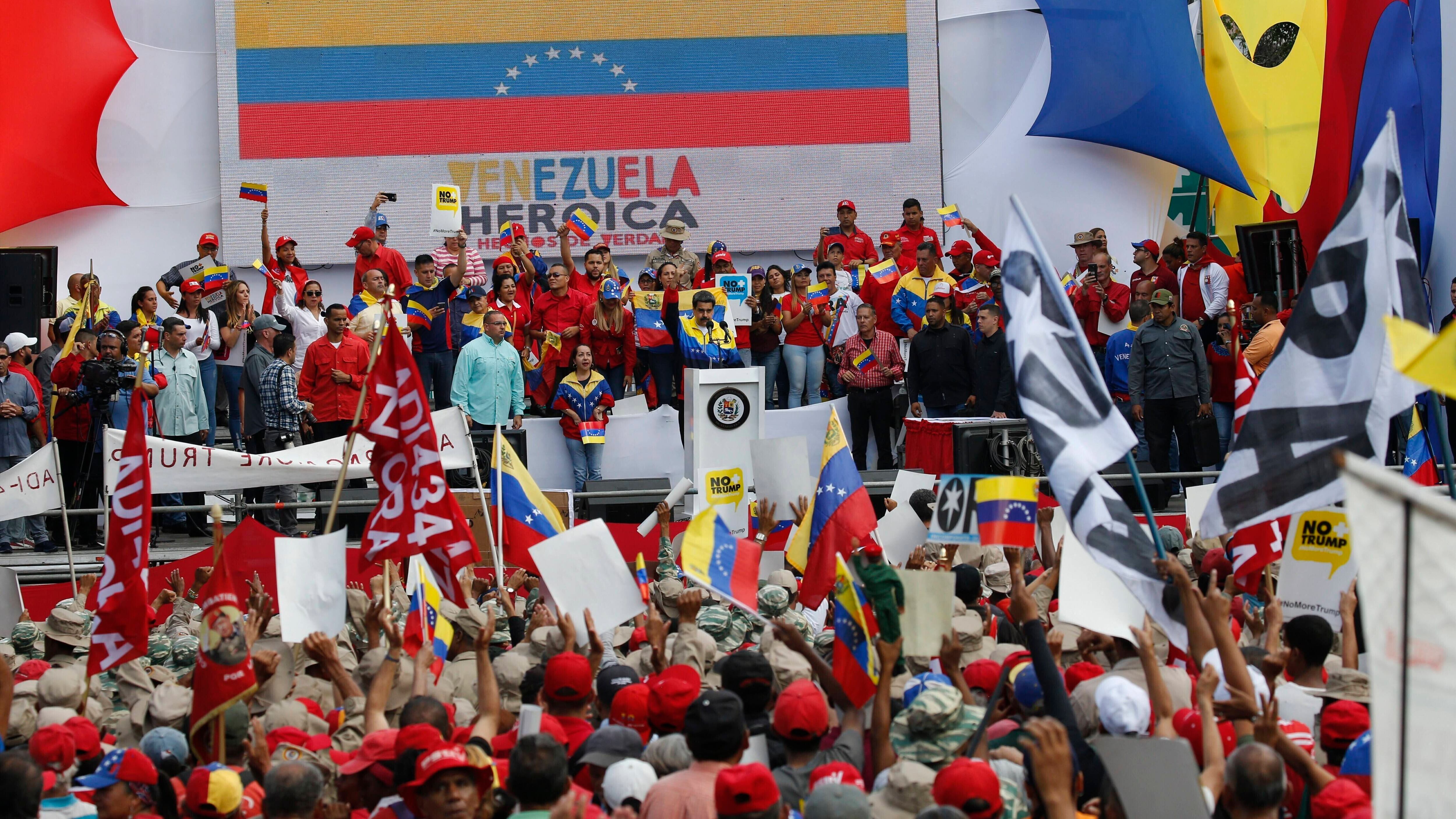 “Vengo a llamar al pueblo a la lucha, a la carga, a la acción contra Trump”, dijo el gobernante, y agregó que Venezuela está preparada para “resistir” ante las acciones de Washington que esta semana congeló todos los activos del gobierno venezolano en Estados Unidos y autorizó al Departamento del Tesoro sancionar a cualquier persona, empresa o entidad que ayude a la administración de Maduro.