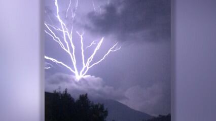 El video muestra el relámpago que emana desde la cima de la montaña y se lanza hacia arriba en un increíble espectáculo de la naturaleza.