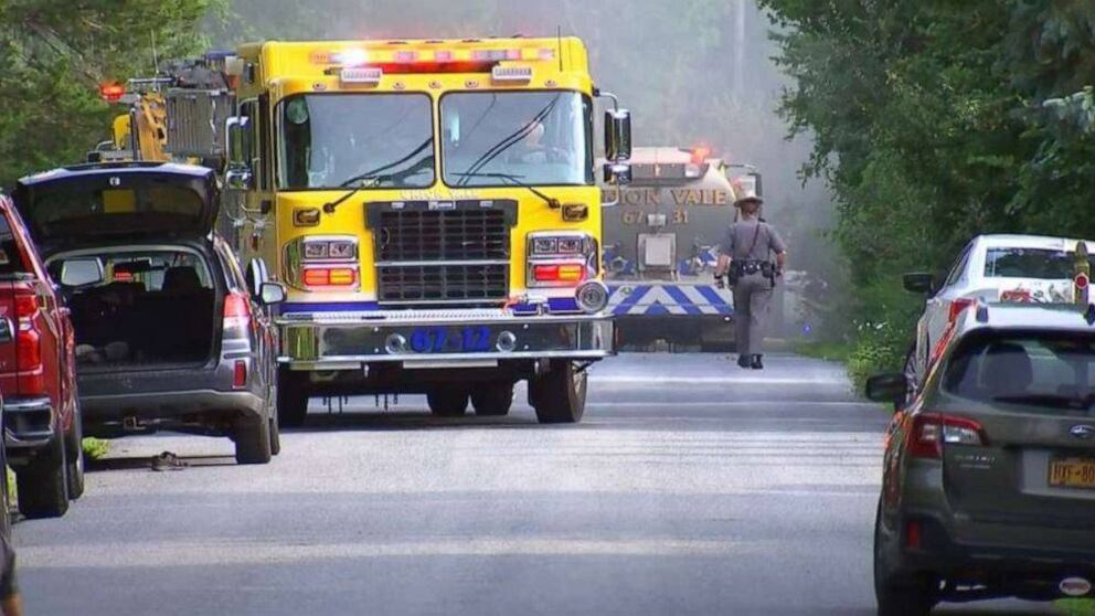 Una avioneta chocó contra una casa en Nueva York, matando a un residente y un tripulante y causando un gran incendio, dijo la policía estatal.