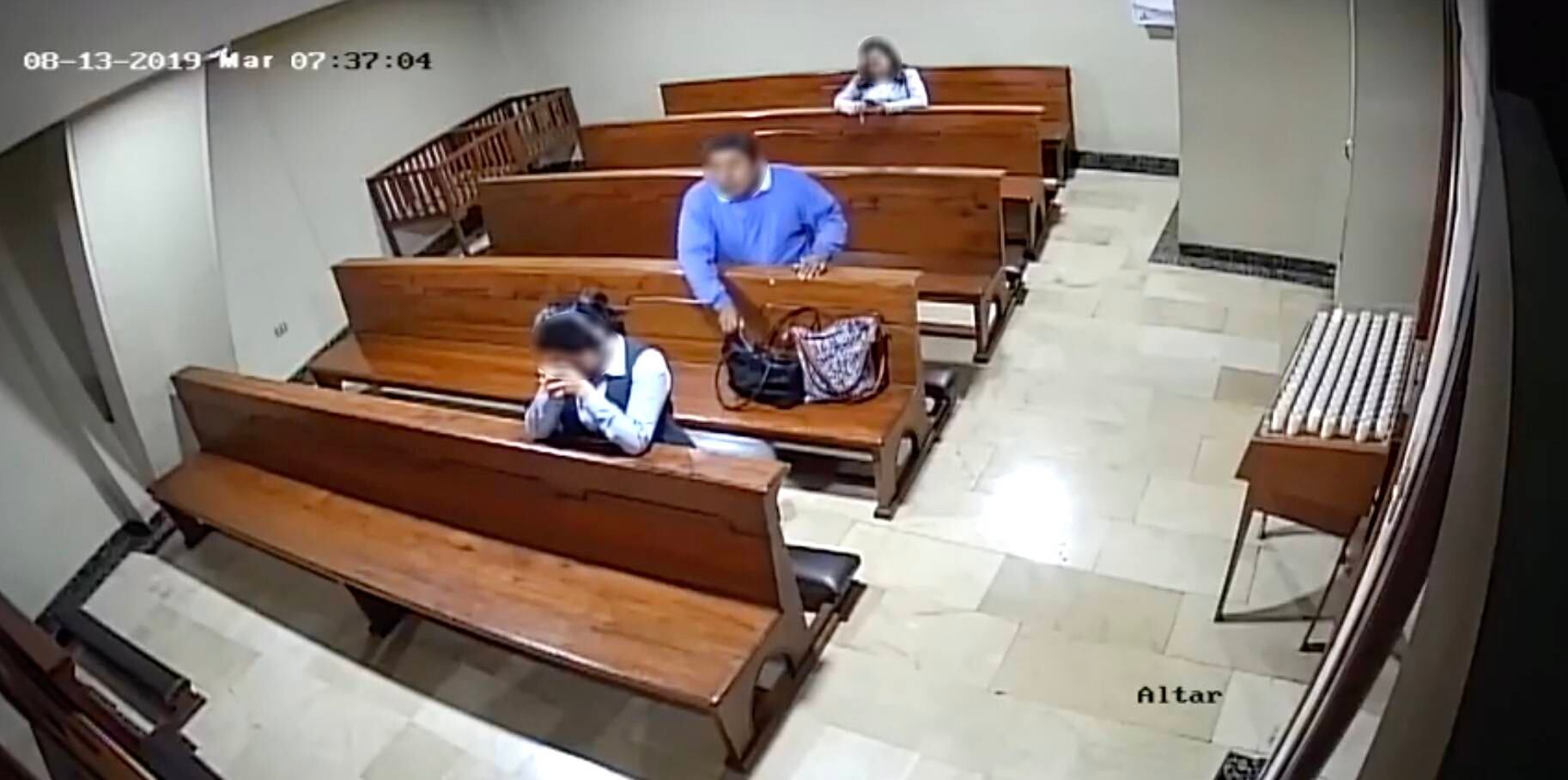 Mientras una mujer se encontraba rezando en el interior de una iglesia en Ecuador, un ladrón aprovechó el momento de distracción de la víctima para registrar su bolso y robar un teléfono celular.