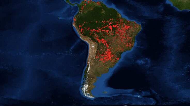 Impresionante imagen satelital tras devastadores incendios forestales que consumen el Amazonas