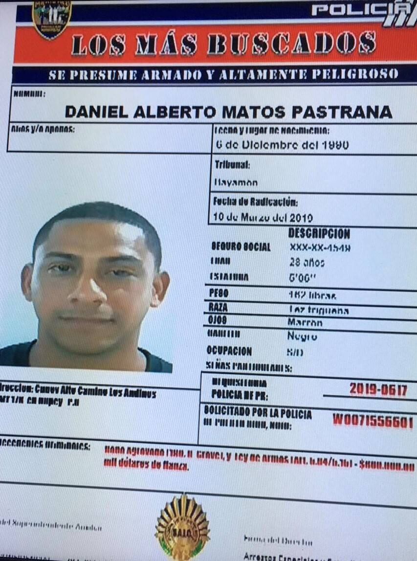 El Teniente Raúl Negrón Caldero Director de la División de Arrestos Especiales y Extradiciones de la Superintendencia Auxiliar en Investigaciones Criminales del Negociado de la Policía informó sobre el arresto de Daniel Alberto Matos Pastrana de 28 años vecino de Cupey.