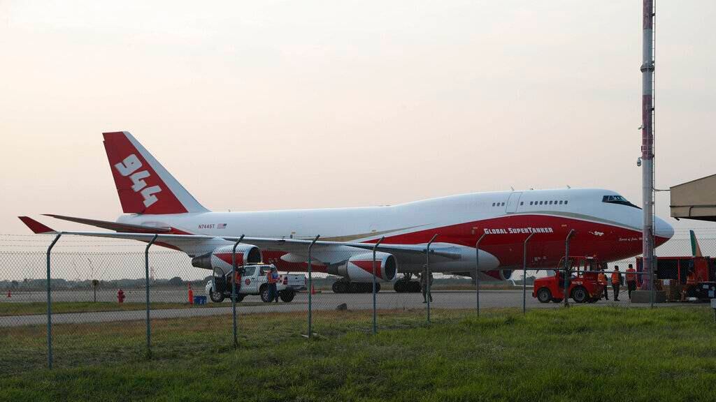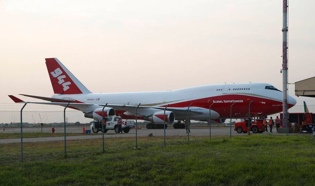 En la madrugada llegó al aeropuerto de Viri Viru el Boeing 747-400 Súper Tanque, una aeronave cisterna con una capacidad de entre 75.000 y 100.000 litros de agua y materiales que ayudan a sofocar los incendios.