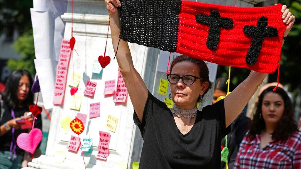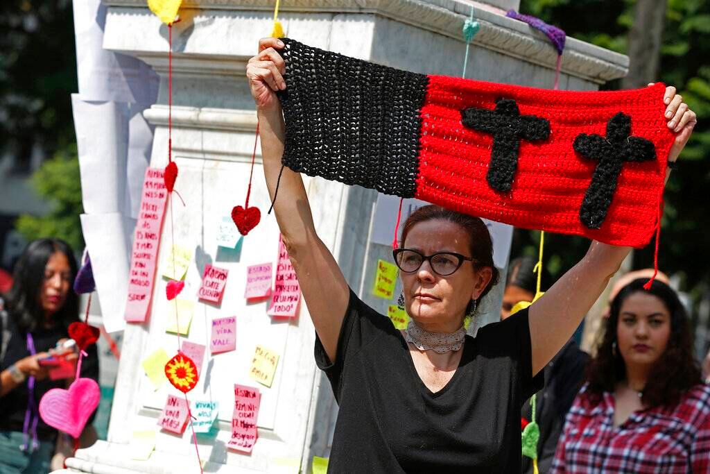 Una docena de mujeres se esparció el sábado sobre el césped del parque Alameda en la capital mexicana para tejer corazones para un pequeño e improvisado monumento dedicado a las jóvenes asesinadas, en un momento en que el país lucha contra la endémica violencia contra las mujeres.