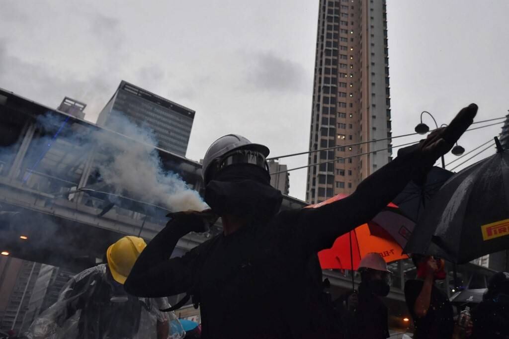 Miles de hongkoneses desfilaron en silencio bajo la lluvia torrencial en el área de Tsuen Wan, pero los manifestantes radicales levantaron una barricada y arrojaron adoquines y cócteles molotov a la policía.
