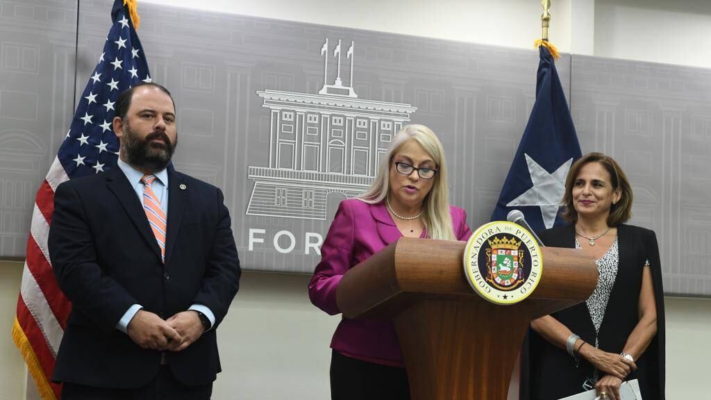 La gobernadora Wanda Vázquez, así como jefes de agencia y el Servicio Nacional de Meteorología realizan una conferencia de prensa ante el posible paso de la tormenta Dorian.