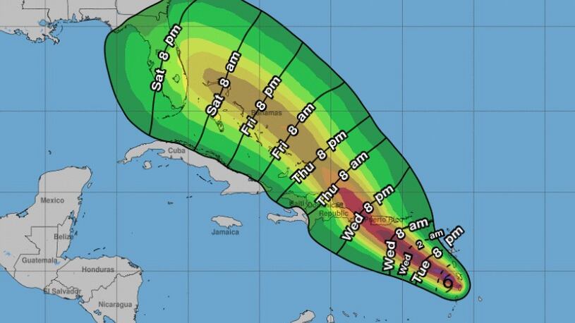 El centro de Dorian se moverá a través del mar Caribe oriental y nororiental durante
