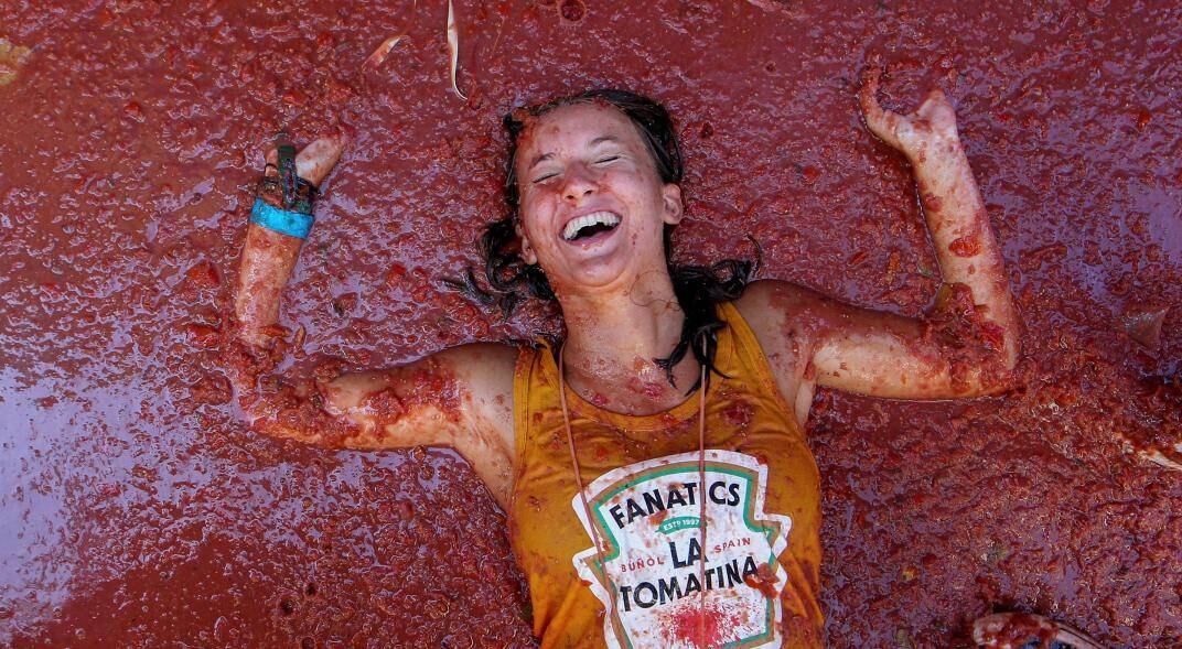 La fiesta se ha organizado durante 74 años y se inspiró en una lucha de comida entre niños locales en 1945 en la región productora de tomate.