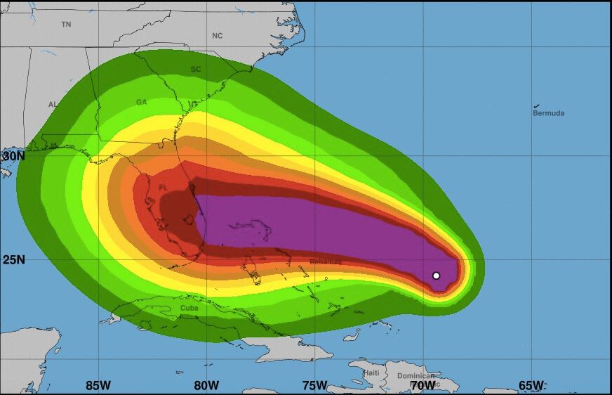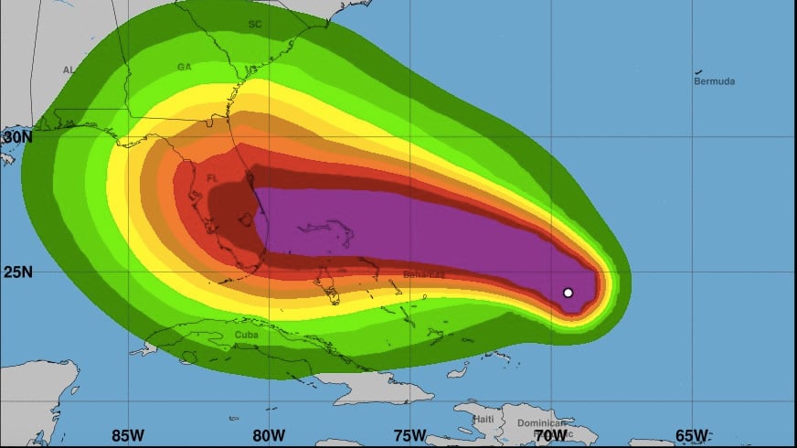 Los pronósticos meteorológicos ubican al huracán Dorian llegando a la Florida como un fenómeno categoría 4.