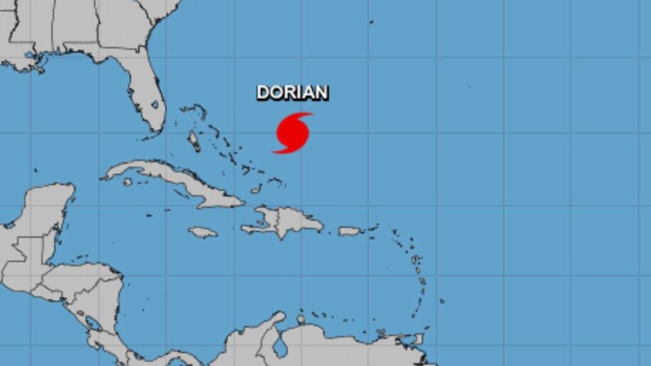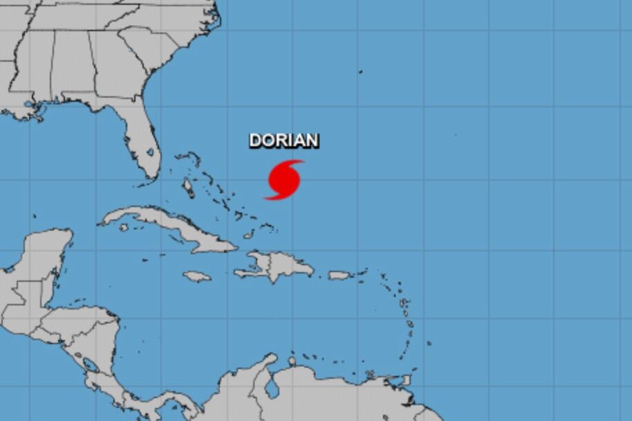 En el boletín de las 5:00 de la tarde del Centro Nacional de Huracanes, el ojo definido del huracán Dorian estaba ubicado cerca de la latitud 25.0 norte, longitud 70.7 oeste.