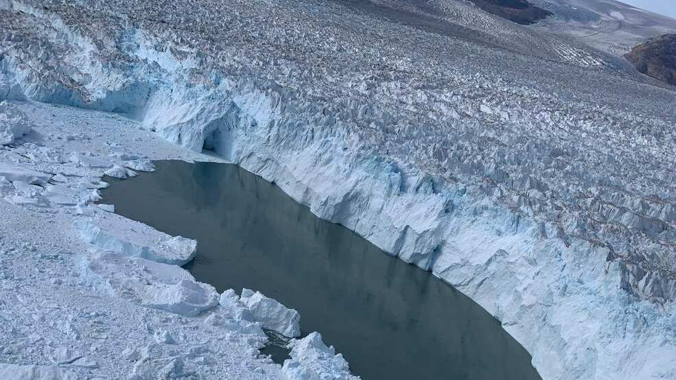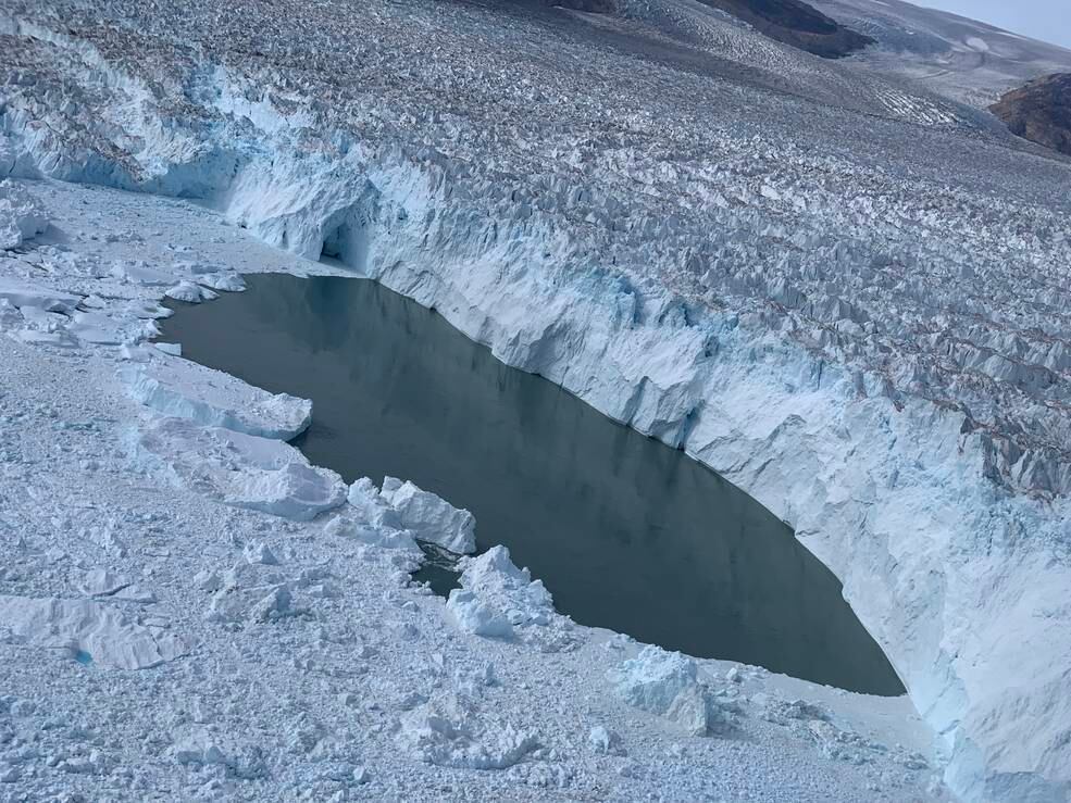 Durante el estudio del glaciar, los científicos notaron una zona de agua en medio del hielo. En ese punto midieron la temperatura, y descubrieron que al menos en la superficie había agua tibia. Por ahora se sigue investigando los resultados de ese análisis.